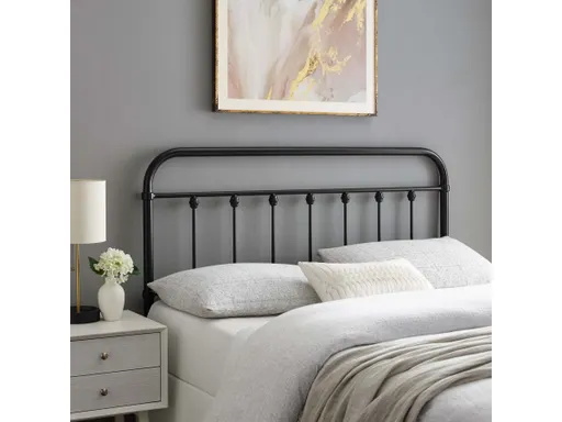 Bring in an energizing focal point to your master bedroom or guest bedroom with the Sage Metal Queen Headboard. Inspired by the charm of modern farmhouse style, this metal headboard exudes vintage appeal and rustic grace. Create a neutral backdrop for bedding and sham styles of all types with Sage. Crafted with powder-coated iron for a sturdy, lasting construction, this height-adjustable headboard features seven mounting positions and fits most queen size bed frames. Assembly Required.