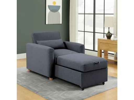 Stretch out in style with the Serta Connor Convertible Chair. This multi-functional chair is easily converted into a lounger or bed depending on your needs, and the high-density foam cushions are packed with pocket coils that provide 24/7 support. Adjust the included throw pillow to maximize your comfort! The durability of the Connor's solid hardwood frame and legs as well as its high-quality woven fabric upholstery will stand up to years of everyday use. Available in Steel, Snow, Light Grey, Silver, Navy, and Cinnamon.