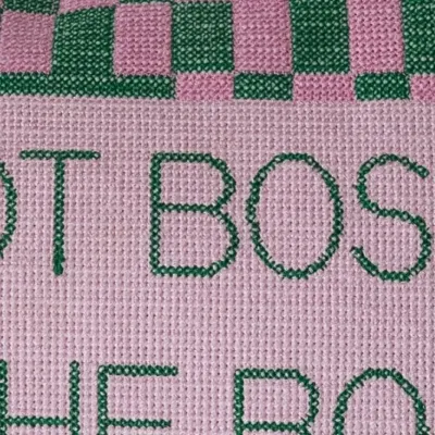 This Cotton Velvet Embroidered Lumbar Pillow with Check Pattern in pink and green is a delightful addition to any home. Crafted from luxurious cotton velvet, this rectangular pillow features a playful check pattern and the phrase "I'm Not Bossy. I am the Boss" embroidered, making it perfect for cottagecore, eclectic, cabin, or farmhouse interiors. The soft cotton fill ensures lasting comfort and support, while the intricate embroidery adds a touch of whimsy and elegance. This pillow beautifully combines aesthetics and functionality, measuring 14 inches in length and 9 inches in height. Whether placed on a bed, sofa, or accent chair, this pillow will surely bring charm and character to any space.