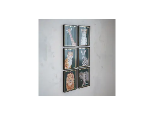 Add the 6-Piece Hand-Painted Animal Box Framed Wall Decor in multicolor to create a whimsical and artistic gallery wall. This delightful six-piece set features hand-painted animal portraits, each with its own unique accessories and vibrant colors. Each piece is showcased in a smoke-colored acrylic box frame, which provides a modern and dimensional look. The set is perfect for boho, eclectic, farmhouse, and contemporary interiors, bringing a unique focal point to a space. Made of hand-painted art mounted in a clear acrylic box frame with a durable wood backing, each piece measures 12 in width and 16 in height, making it ideal for a gallery wall or as individual accents. This set is an easy way to introduce a sense of curated whimsy and modern design to a home.