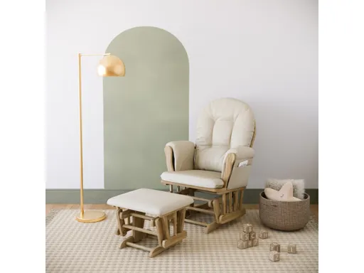 Bring your dream nursery to life with the comfortable, timeless, family-favorite Storkcraft Hoop Glider and Ottoman. The Storkcraft Hoop Glider and Ottoman is a stylish 2-piece nursery glider and ottoman set that combines value, comfort, and quality craftsmanship. The Storkcraft Hoop Glider and Ottoman’s padded arm cushions are equipped with a convenient storage pocket, allowing parents to store their favorite reading materials and small nursery essentials. For a smooth, relaxing, and gentle rocking experience within the nursery, the glider and ottoman feature enclosed metal ball bearings. The glider and ottoman’s solid wood base provides families with long-lasting durability. The Storkcraft Hoop Glider and Ottoman is crafted of rubberwood framing, engineered wood, and wood composites, and its applied finish has been tested to meet or exceed the applicable ASTM and CPSIA safety standards. Storkcraft is the proud recipient of the Parent Tested Parent Approved (PTPA) Seal of Approval for nursery and children’s bedroom furniture, and the 2023 Women's Choice Award for 9 out of 10 Recommended Baby & Kids Furniture. Backed by a 1-year limited manufacturer’s warranty. Assembly required.
