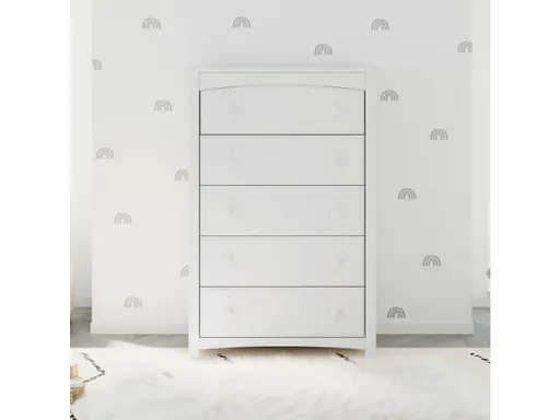 The Storkcraft Kenton 5-Drawer Dresser is an easy-to-match, universal nursery and bedroom storage solution. Crafted with high-quality wood and composites, this durable highboy-style dresser features 5 spacious drawers, durable steel hardware, Euro-glide drawers with safety stops, and is fastened with German cam locks for dependable and reliable construction. Also, it's backed by Storkcraft's 1-year limited warranty and supportive customer care. The Kenton meets or exceeds all applicable ASTM International and CPSC safety standards, and complies with all applicable federal anti-tipping standards. For additional nursery or bedroom storage, complete the Storkcraft Kenton collection with the matching 6-Drawer Double Dresser. Exclusively from Storkcraft – makers of quality nursery Proud recipient of the Parent Tested Parent Approved (PTPA) Seal of Approval.