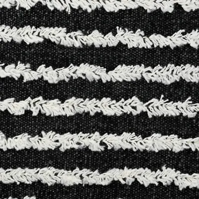 The Wispy Ways pillow collection boasts whimsical textures in a variety of colors and sizes. These unique accents bring playful energy into your space while remaining stylishly chic. This piece features short tufted horizontal stripes atop a stonewash black backing. This well-balanced creation exudes calming neutral energy to easily coordinates various home styles and themes. Place this accent in a bedroom, living space, kid's area, or entryway for eye-catching style and endless compliments. Handcrafted with the customer in mind, there is no compromise of comfort and style with the pillow line we create.
