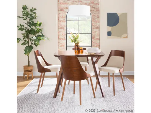 Experience love at first sit with the Anabelle accent chair. Sleek silhouette with slim round legs reflects your mid-century style. Gray fabric adds alluring softness to the walnut colored bent wood. Sloping arms create a cool vibe.