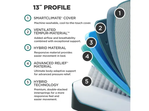 The TEMPUR-LuxeAdapt® series delivers advanced pressure relief and support with layers of ventilated TEMPUR-Material™, hybrid material, and Advanced Relief™ Material. It’s designed to relieve pressure points and support your spine for the deeply comfortable rest you deserve.