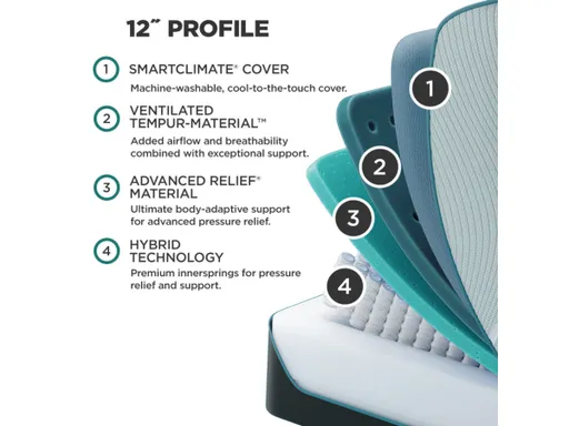 * Hybrid comfort: Premium innersprings complement our Tempur-Pedic® materials to deliver the right combination of pressure relief and support.
