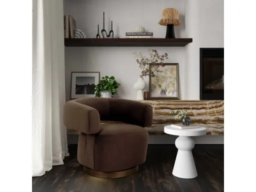 Sleek and postmodern, the River Chair has a contemporary shape with neutral accents that make it one of a kind. Its supportive wood frame, lavish velvet upholstery, and natural accents guarantee style and reliability. Its tubular design-inspired arms and slanted base will add movement and dynamism to any room!