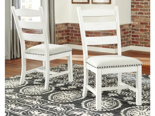 Whether you’re pining for cottage charm or modern farmhouse sophistication, the Valebeck dining room upholstered chair, with its timeless ladderback styling, is something to savor. The vintage white finish exudes a sense of ease that’s made all the more enticing thanks to a cushioned seat wrapped in a soothing gray linen colored textural fabric.