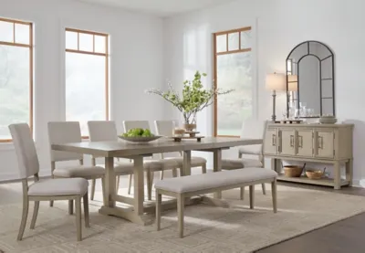 Indulge in relaxed refinement with the Vallardia dining package. A casual silhouette and light grayish brown finish exemplify its updated take on traditional styling. Inspired by the past, reimagined for the present. Now there’s a show of great taste.