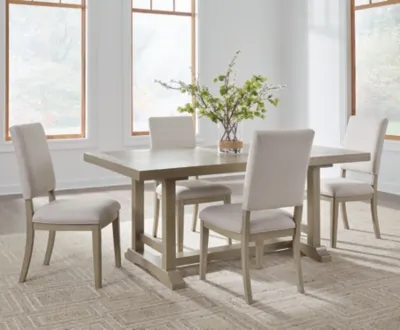 Indulge in relaxed refinement with the Vallardia dining package. A casual silhouette and light grayish brown finish exemplify its updated take on traditional styling. Inspired by the past, reimagined for the present. Now there’s a show of great taste.