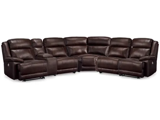 The VonKurt power reclining sectional with console is crafted with refined design in mind. It pairs genuine leather upholstery with faux leather, so you get the high-end look you love at a more affordable price. Everyday relaxation gets an upgrade with one-touch reclining and a spacious chaise. From easygoing mornings to movie nights, its upscale aesthetic puts a contemporary spin on comfort.