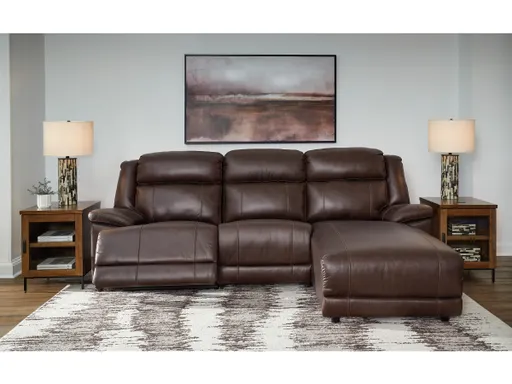 The VonKurt power reclining sofa with chaise is crafted with refined design in mind. It pairs genuine leather upholstery with faux leather, so you get the high-end look you love at a more affordable price. Everyday relaxation gets an upgrade with one-touch reclining and a spacious chaise. From easygoing mornings to movie nights, its upscale aesthetic puts a contemporary spin on comfort.