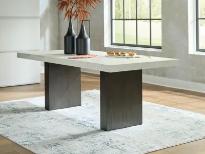 Create your ideal mealtime space with the Westonfort dining table. Its dark espresso brown finish and clean lines are undeniably contemporary, but the attitude is more relaxed—our interpretation of metropolitan casual design. A double plinth base with a thick faux cement tabletop elevates the modern mood. Whether you're starting your day or winding down, there's room for eight at this perfectly stylish table.