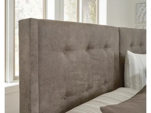 For fans of an uncomplicated mid-century modern vibe, the Wittland queen upholstered panel headboard clearly steals the show. Plush to the touch and so easy on the eyes, it's designed with a low profile and two tufted cushions. Rich light brown faux leather upholstery completes the look. This headboard is a simply stunning way to achieve the bedroom of your dreams.