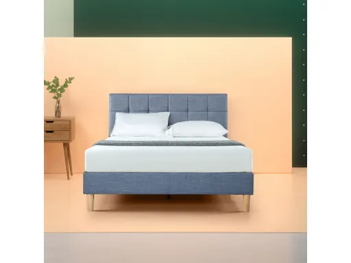 Stylish and built to last, the Axel Upholstered Platform Bed features a distinct square stitched headboard with comfy foam padding that will elevate both the look and feel of any bedroom. Available in dark gray and navy, this versatile design mixes traditional comfort with modern flair and is sure to fit perfectly in any interior style. More than just its looks, its durable steel framework, wood slats, and center support legs lets you rest easy knowing you'll have dependable mattress support for years to come. And with no box spring needed, you'll save both money and the hassle of buying another foundation. Everything ships straight to your door in one convenient box, making delivery and setup as easy as can be. All parts, tools and instructions you'll need to build it (including a worry-free 5-year warranty) are expertly packed into the back of the headboard compartment, ready to be assembled in an hour or less.