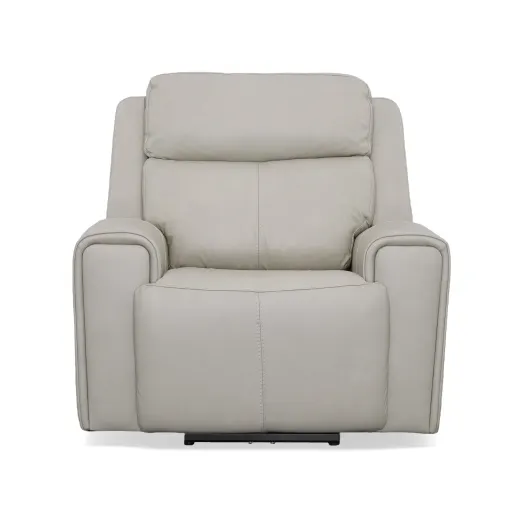 Recline into relaxation with the Barnett power recliner with power headrest and lumbar. As you lounge, our Zero Gravity recline technology cradles your body and gives you a feeling of weightlessness. Dial in your perfect level of comfort with a power control that independently adjusts the recline, headrest and lumbar for extra back support. For your convenience, the recliner features a USB charging port built into the power control to keep devices charged and a handy side pocket for storing remotes. A waterfall chaise takes pressure off tired legs, while a wide, contoured seat allows you to sit comfortably for as long as you like. Our patented Flexsteel DualFlex Spring System™ provides a pleasing mix of firmness and flexibility as you sit. And thoughtful enhancements, including wide track arms with durable top-stitching and attractive welt trim, give this recliner an elevated look. Finished in our premium top-grain leather, this recliner is sure to look good for years to come.