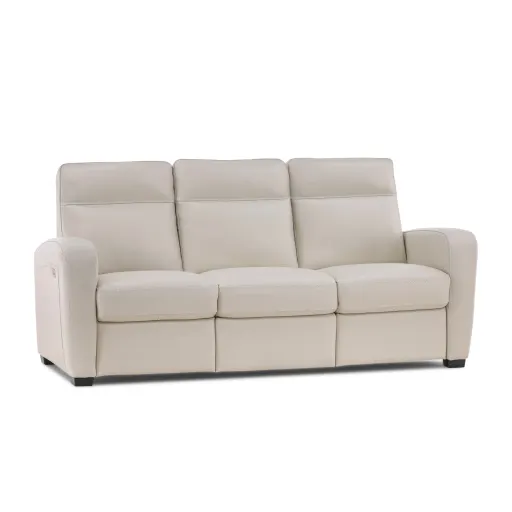 This sleek and modern power reclining sofa is the perfect addition to any living room. With its solid white leather upholstery and contemporary design style, it's sure to be a statement piece. The 100% leather construction ensures durability and comfort, while the dual power reclining function allows you and your loved ones to relax in style. The exterior release mechanism makes it easy to adjust the reclining position, and the high leg feature provides additional support and stability. The attached back cushion and track arm design add to the overall comfort and sleek look of the sofa. The block leg base provides a sturdy foundation, and the compact dimensions (78" wide, 37" deep, and 38" high) make it perfect for smaller spaces. Whether you're looking to upgrade your current furniture or start from scratch, this power reclining sofa is a great choice. Its timeless design and comfortable features make it an excellent investment for any home. With its active production status, you can trust that this sofa is a high-quality product that will provide years of comfort and enjoyment.