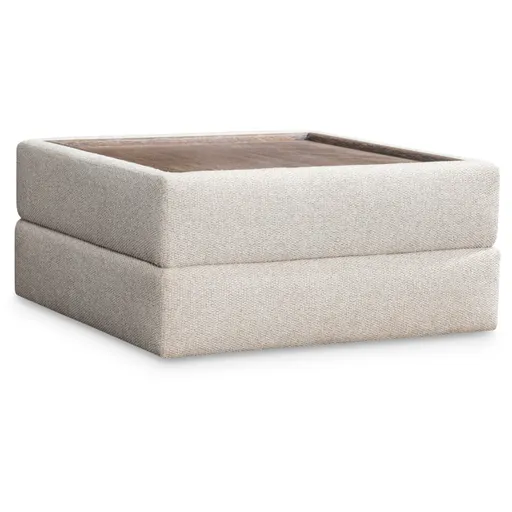 The Vista ottoman is marked by gentle curves, stitched detailing and a wooden tray top that offers functionality. Lines are softened and the upholstery is lushly designed for maximum comfort.