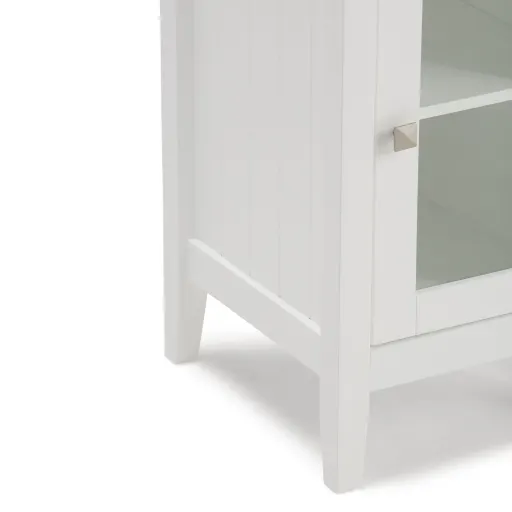 Features one (1) door with one (1) adjustable interior shelf and three (3) open shelves. Brushed nickel hardware