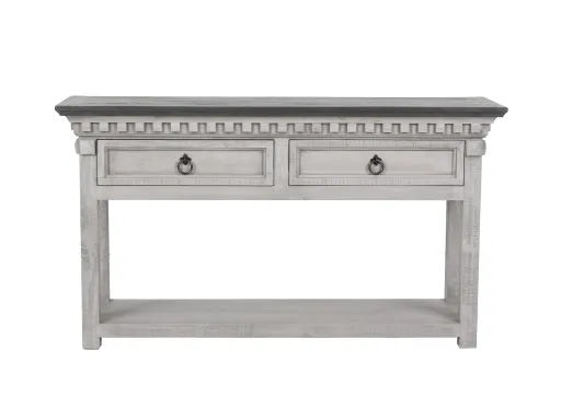 Experience the timeless appeal and rustic beauty of our meticulously crafted Sofa table. Made from solid wood and elegantly finished in rustic gray, this sofa table enhances your living space with its charming countryside aesthetic.