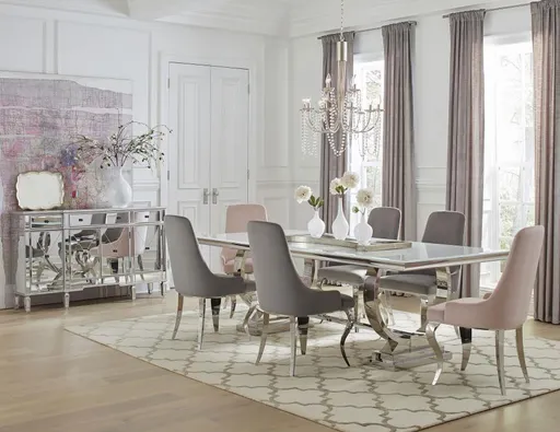 Immerse yourself in the epitome of elegance and comfort with this upholstered dining chair. Draped in soft velvet, the tailored wingback and demi-arm silhouette offer a plush slipper-style seat ideal for formal dinners and long conversations. Cabriole-shaped legs in ultra-polished electroplated chrome provide sleek contrast to the velvety texture. Expertly crafted from stainless steel, this side chair blends refined curves and upscale materials with enduring support and sophistication.Includes: Two (2) side chairs• Upholstered dining chair with wingback silhouette and slim flared arms for added comfort • Finished in a smooth velvet fabric for a soft, tailored, and upscale look • Cabriole-style legs crafted from electroplated chrome with a polished finish • Curved stainless steel legs offer sculptural contrast to the tailored seat shape • Built with durable hardwood framing and high-density cushioning • Ideal as a formal side chair or accent piece for stylish dining arrangementsDimensions:Side Chair: 22.0" x 24.5" x 39.0", SeatHeight: 19.25, SeatDepth: 17.75, Weight: 25.35
