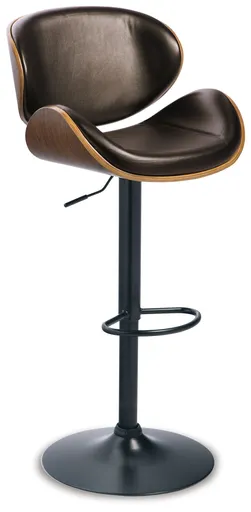Style takes quite a modern turn. Sporting a distinctively contoured back and seat design, this upholstered swivel bar stool is sure to bring an elevated look to your living space. Wrapped in a faux leather upholstery, the seating area’s artful contours are accentuated with a faux wood finish.