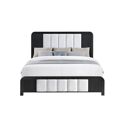 Beverly - Queen Bed With Fluted Detailing, Upholstered Headboard And Footboard, Low Profile Design - Black White85.0"W x 63.0"D x 60.0"H - 136.4 lb