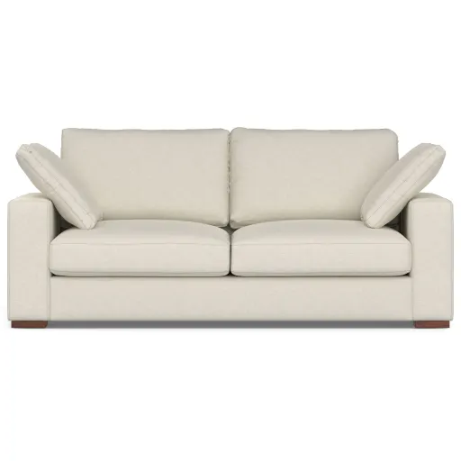 Measuring wide and featuring luxuriously deep seats, this handcrafted, oversized loveseat is a great choice for smaller living rooms, apartments, and open-concept condos. Upholstered Fabric, a soft yet durable, easy-care fabric made with 100% recycled and protected with water-repellent and fire-resistant coatings; this eco-friendly fabric meets the Global Recycled Standard and OEKO-TEX® STANDARD 100. Offering medium-soft firmness, the seat cushions are a generous thick and are constructed with high-density foam cores and feather/fiber toppers wrapped in high-quality to enhance fullness and help the cushions maintain their shape and soft, comfortable feel. The throw pillows, reversible back cushions are stuffed with a combination of feather and fiber filling for a softer feel, while the wide armrests are covered in thick foam padding for a cozy seating experience. Sturdy, corner-blocked frame made with solid and engineered woods includes high-quality, high-resilience webbing on the back to provide support; webbing and high-gauge sinuous springs under the seat to prevent sagging; and solid wood feet. No assembly required: Simply fluff the seat cushions, back cushions, and throw pillows before placing them, and enjoy! This fabric is treated to prevent spills from entering the material and becoming permanent stains; gently blot (don’t rub) any spills right away with a clean, dry, absorbent cloth.