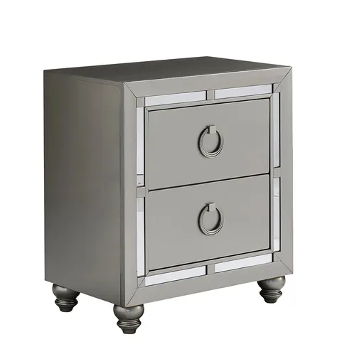 Mirror Accents: Enhance the nightstand's elegance with reflective surfaces. Spacious Drawers: Provide ample storage space for your bedside essentials. Bun Foot: Offers a classic design element that adds stability. Center Metal Glide: Ensures smooth and easy operation of drawers. Solid Wood and MDF Construction: Combines durability with a sleek appearance. Silver and Grey Finish: Complements a wide range of bedroom decors.