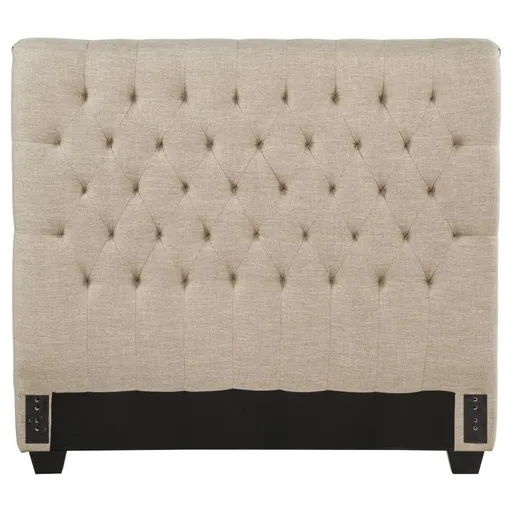 Set the tone in your bedroom with a stylish, modern headboard. This upholstered design requires a bed frame (not included) and creates a fresh, refined look without taking up too much space, leaving your bedroom open and airy. Its neutral upholstery sets the tone in your bedroom decor, while plush padding creates an inviting, cozy impression. Button tufting creates a diamond pattern, delivering the perfect blend of classic and contemporary design themes. Complete with finish block feel that bring stylish appeal.