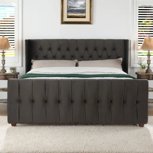 David - King Tufted Wingback Bed - Dark Charcoal Gray83.0"W x 88.0"D x 54.0"H - 114.0 lb