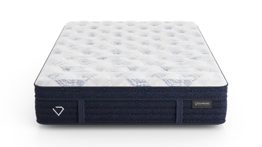 The white quilted top and dark blue side panels give this mattress a clean, modern look that works well in a wide range of bedroom styles. Its medium comfort level makes it a practical choice for sleepers who want a balance of softness and support, while the foam-encased coil design helps promote a more stable and supportive feel across the mattress. With cooling features, pressure-relieving materials, and reinforced support, this Euro top mattress is a strong choice for everyday comfort.