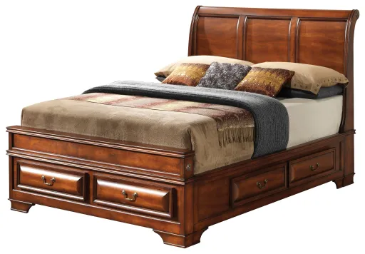 Real Wood Veneers: Collection features real wood veneers over wood solids for a natural look. Dovetailed Drawers: Drawers are dovetailed for added durability and strength. No Foundation Required: Bed does not require a foundation or box spring, only a mattress is needed. Wood Sleigh Bed: Sleigh bed design uses wood veneers for a classic touch.