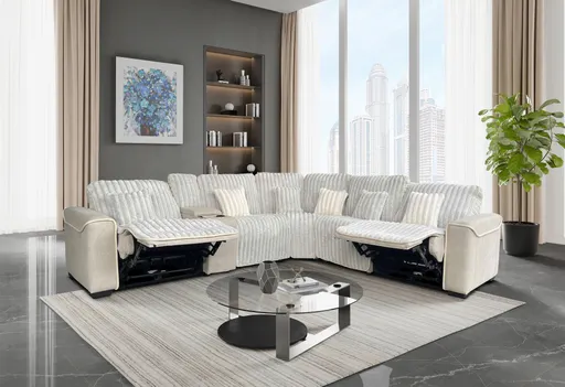 Upgrade your living room with a statement-making modern power reclining sectional that blends plush comfort, modular flexibility, and built-in tech. This 6-piece gray corduroy sectional features a sculpted ribbed texture, soft-touch upholstery, and a deep, lounge-ready profile that makes movie nights, game days, and everyday relaxation feel elevated.