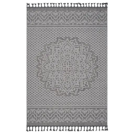 Guros - 5' X 7' Medallion Indoor / Outdoor Area Rug - Gray / White90.0"W x 63.0"D x 0.28"H - 13.0 lb