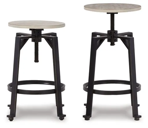 Add a rustic-yet-refined look to your home with this two-tone swivel stool. Its distressed whitewash wood seat with black metal frame conveys an inviting farmhouse style. This charmer easily moves from counter to pub height, giving you and your guests the freedom to sit comfortably while adding a casually cool industrial vibe to your table.