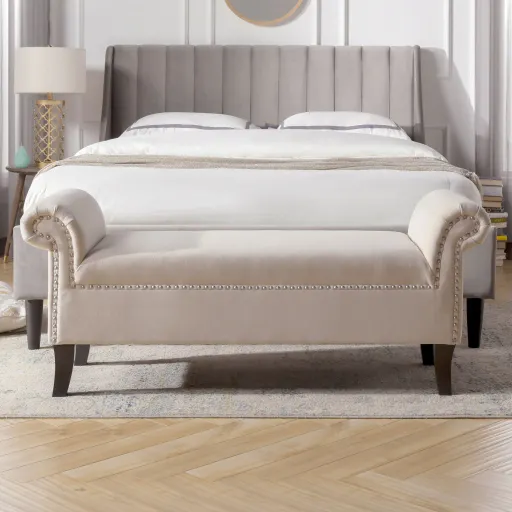 Kathy - Roll Arm Entryway Accent Bench - Sky Neutral Beige53.5"W x 17.0"D x 23.0"H - 25.0 lb
