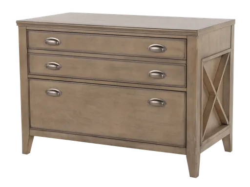 Elevate your home office storage with this light brown lateral file cabinet. Its sleek design, clean lines, and silver pulls contribute to a contemporary style. Whether used on its own or paired with a matching desk, this furniture piece is sure to rejuvenate your home office, infusing it with a fresh, modern aesthetic that you'll absolutely love!