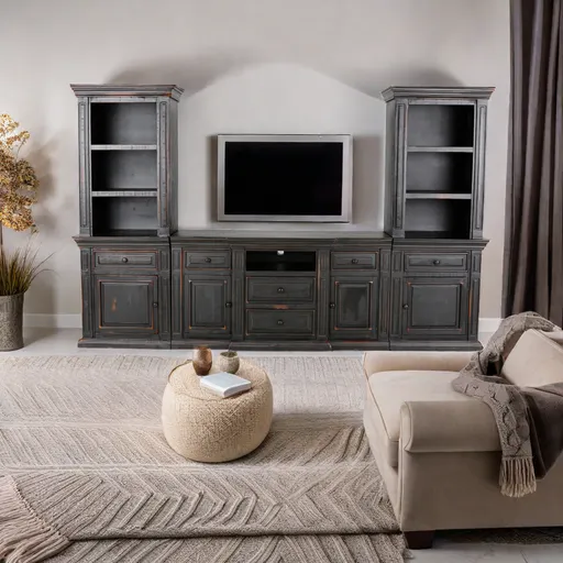 Includes: Pier Left book case, Pier Right Book case, TV Console