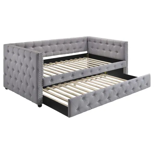 Mockern - Upholstered Twin Daybed With Trundle - Gray