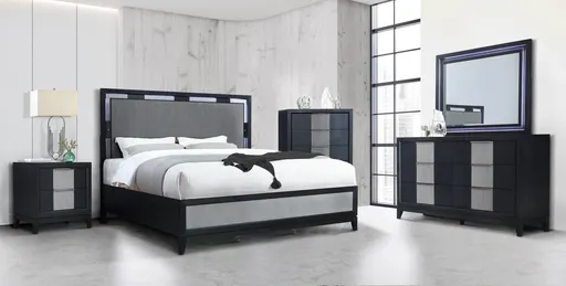 Complete your room with this modern 2-drawer nightstand featuring an architectural fluted drawer design in a wire-brushed black finish. Built for everyday use from rubberwood and MDF with technical veneer, the case is finished with nickel-tone hardware and smooth full-extension, ball-bearing drawer glides. A screwed-on MDF back panel adds stability. Coordinates with the matching bed, dresser, mirror and chest from the same collection.