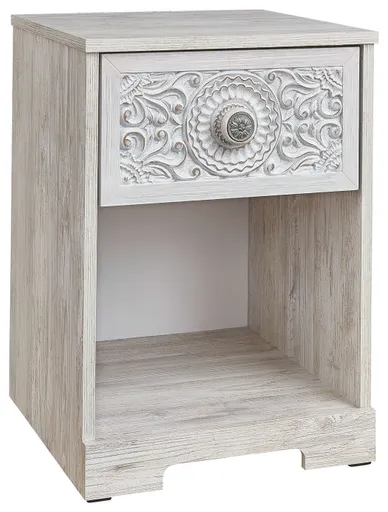 If it’s coastal chic or cottage quaint style you long for, this whitewashed nightstand invites you to go to town. Its distinctive weatherworn finish conveys an easy-breezy sensibility, perfect for a restful bedroom retreat. Rest assured, tastefully edited lines and medallion drawer pulls give this attractively priced nightstand a high-end aesthetic.