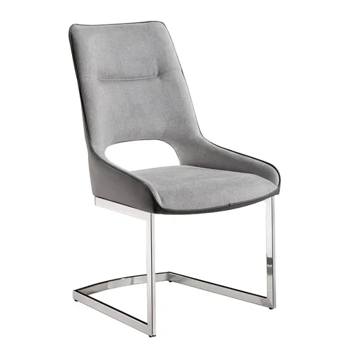 Materials: Crafted with faux leather, metal, and plywood for durability and style. Finish: Elegant grey finish complements a variety of interior designs. Base Design: C style chrome-toned rounded base adds stability and modern appeal. Floor Protection: Equipped with floor stoppers to prevent scratches. Comfort: Padded seating offers exceptional comfort during meals.