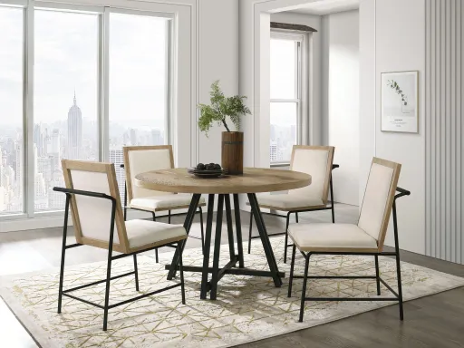 Tate - Round Dining Table With Cream Color Upholstered Chairs (Set of 5) - Oak Finish47.0"W x 47.0"D x 31.0"H - 130.0 lb