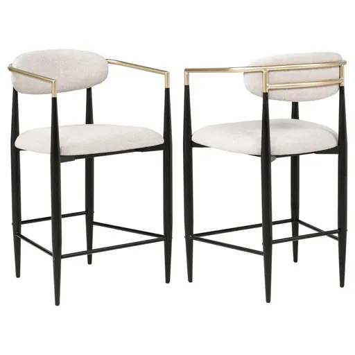 Charm is the watchword for a set of two modern counter height stools. Each embraces a light, airy ambiance with an open back and slim, rounded rest that provides ample support for everything from a leisurely meal to a quick bite. Its padded seat adds foam for comfort, while stylish upholstery sets the tone in your kitchen or dining room. The counter stool features a finish base with a tapering silhouette that offers airy, open elegance. A built-in footrest is a perfect finishing touch, delivering impressive support to both the chair and those that sit upon it. Tina - Fabric Upholstered Counter Chair (Set of 2) - Beige22.5quot;W x 21.25quot;D x 37.25quot;H - 18.15 lb Tina - Fabric Upholstered Counter Chair (Set of 2) - Green22.5quot;W x 21.25quot;D x 37.25quot;H - 18.15 lb Tina - Fabric Upholstered Counter Chair (Set of 2) - Dark Gray22.5quot;W x 21.25quot;D x 37.25quot;H - 18.15 lb