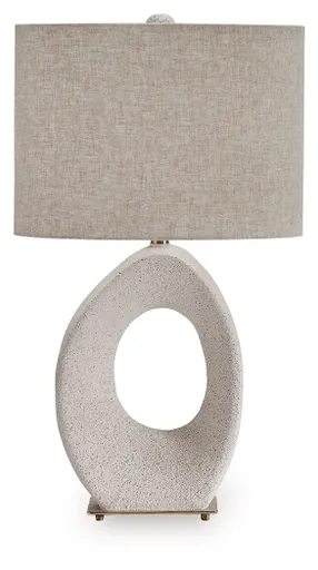 Curate a space that reflects your eye for artistic flair. This table lamp is crafted with a cream speckle finish that lets its unique geometric form shine. Elegantly accented by a goldtone base, this piece is cool, contemporary and utterly chic.Additional Dimensions