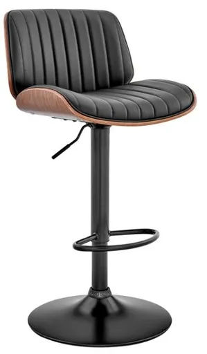 Introduce the beautiful Brock Adjustable Black Faux Leather and Walnut Wood Bar Stool into your home and allow it to revitalize your home setting! The high-grade faux leather upholstery features a textured-lined seat back, giving the Brock a refined form.