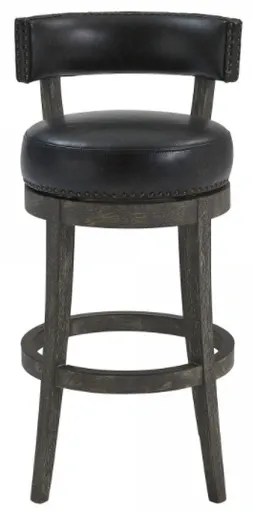 Ideal for the home bar, the Corbin features a durable rubber wood combination frame that is finished in elegant American Gray. The Corbin’s plump, foam padded seat and back are upholstered in Brown Onyx faux leather, assuring an exceptional degree of comfort while seated.
