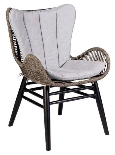 Embrace a comfy retreat with our Fanny outdoor dining chair in eucalyptus wood and rope. The dynamic and sculptural profile of the dining armchair is accentuated with an elegant rope weave. The modern charm of the resilient and weather-resistant rope harmoniously pairs with the architectural eucalyptus base.