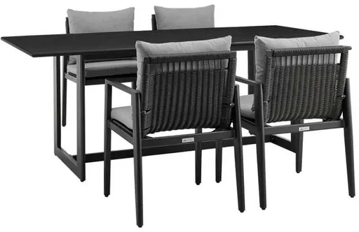 Dine outdoors and soak up the scenery with the Grand Outdoor 5-Piece dining set from Armen Living. The Grand dining set includes 6 outdoor chairs with cushions and 1 rectangular patio dining table. Rattan is intricately hand-woven around the back of the seat to serve as a unique and elegant detail.